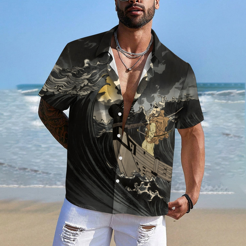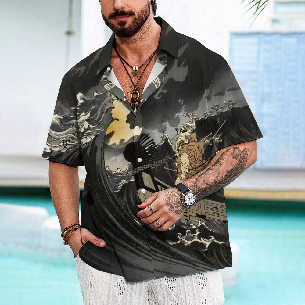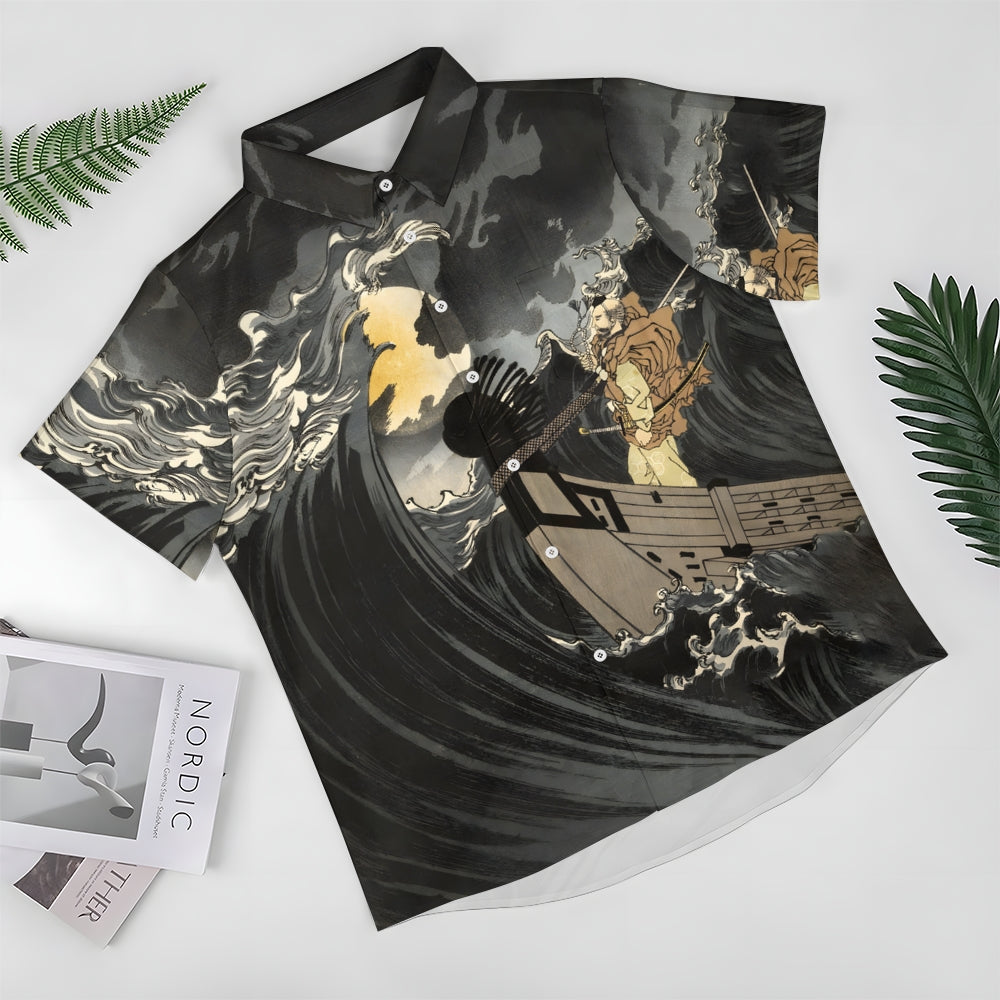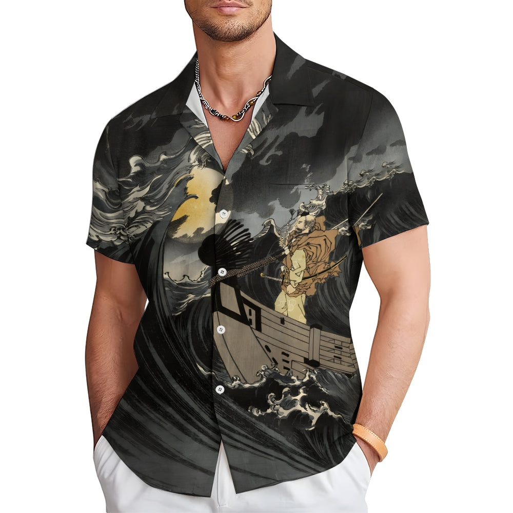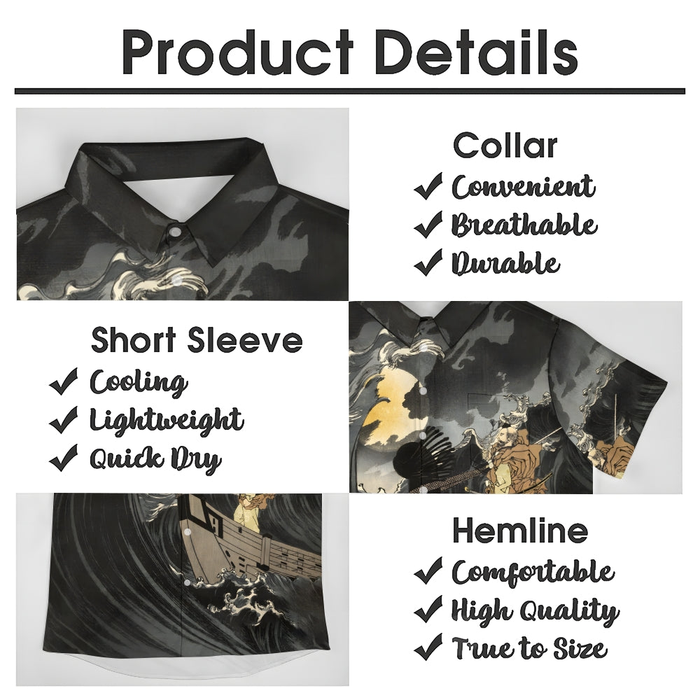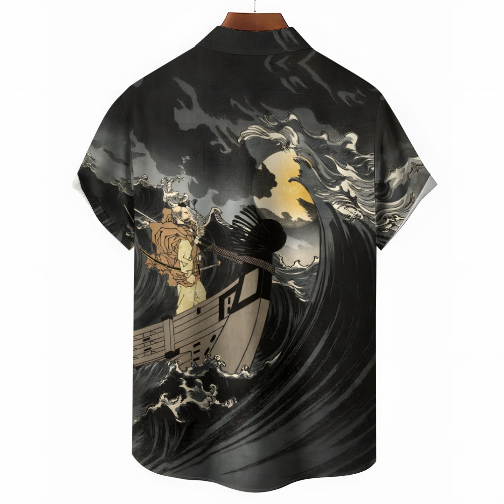 Ukiyo-e Waves and Samurai Casual Large Size Short Sleeve Shirt 2406003242