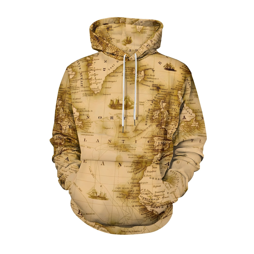 Unisex Casual Vintage Map Pocket Hoodie 2308100068