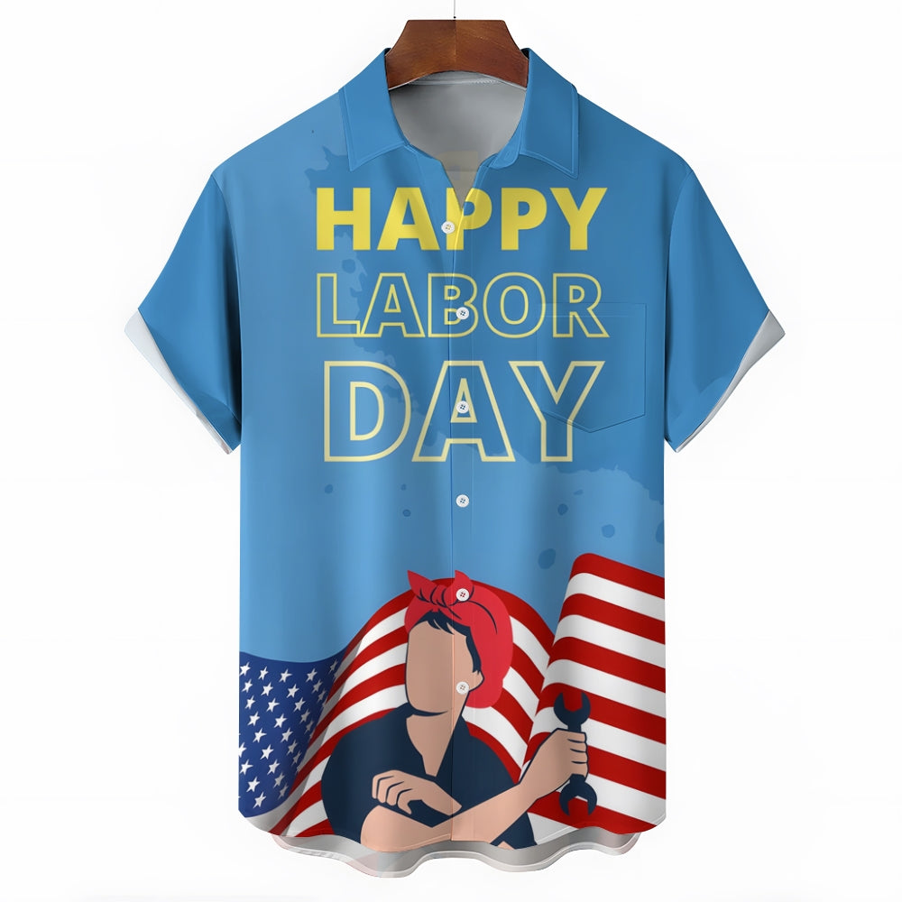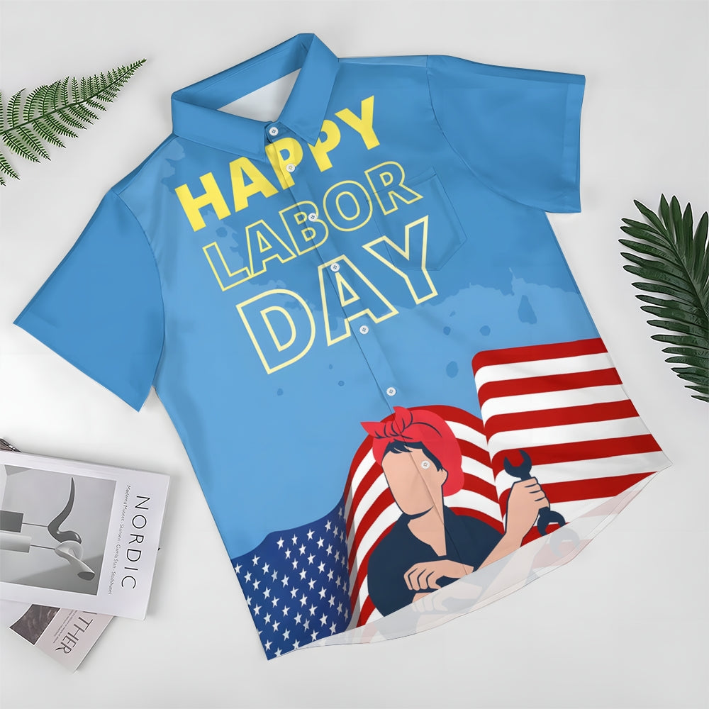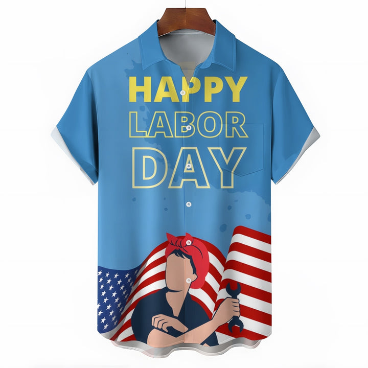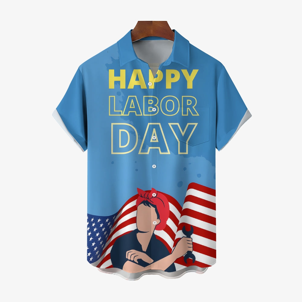 US Labor Day Casual Large Size Short Sleeve Shirt 2408000368