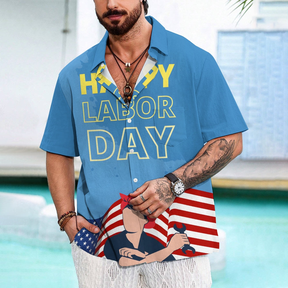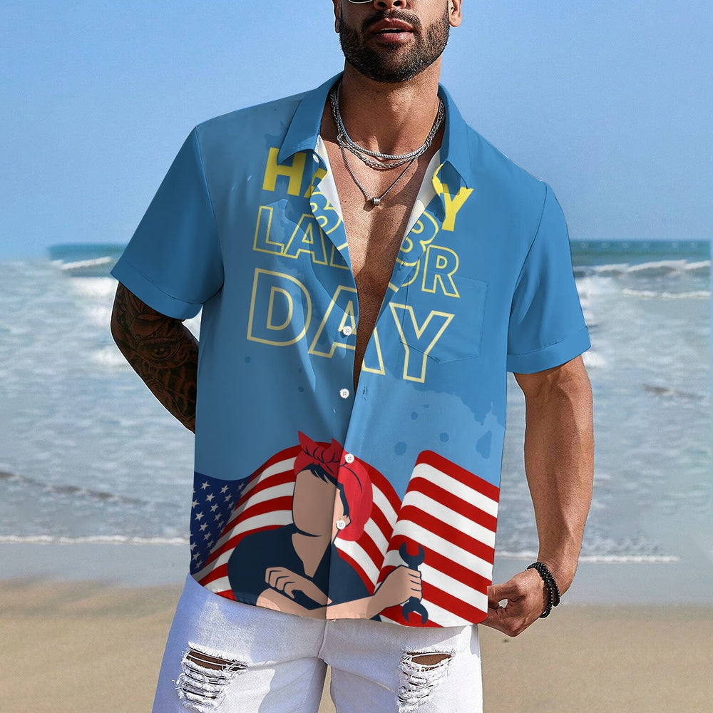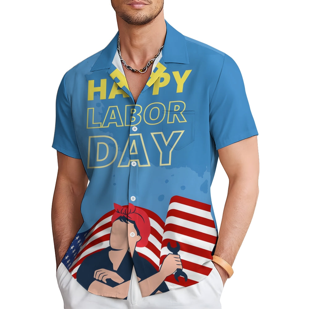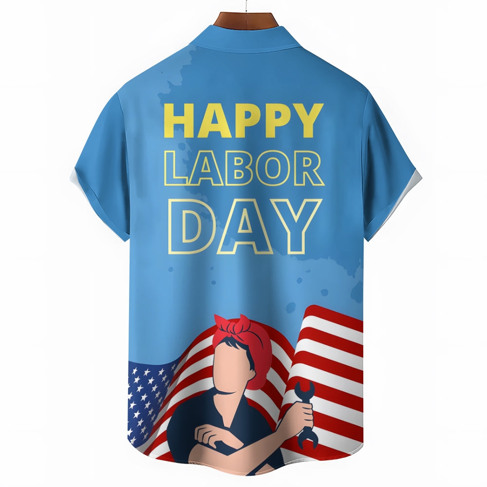 US Labor Day Casual Large Size Short Sleeve Shirt 2408000368