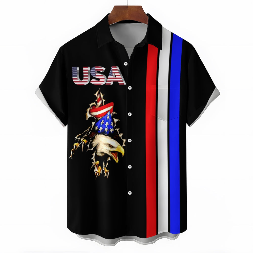 Men's Classic Cartoon Modified Car Pinstripe Contrast Short Sleeve Shirt 2411001857