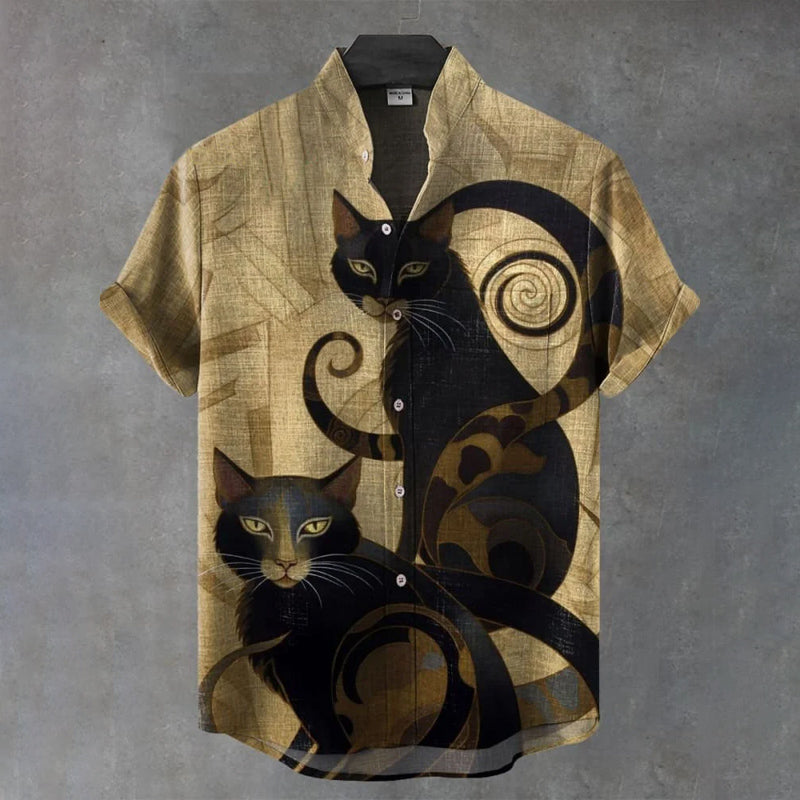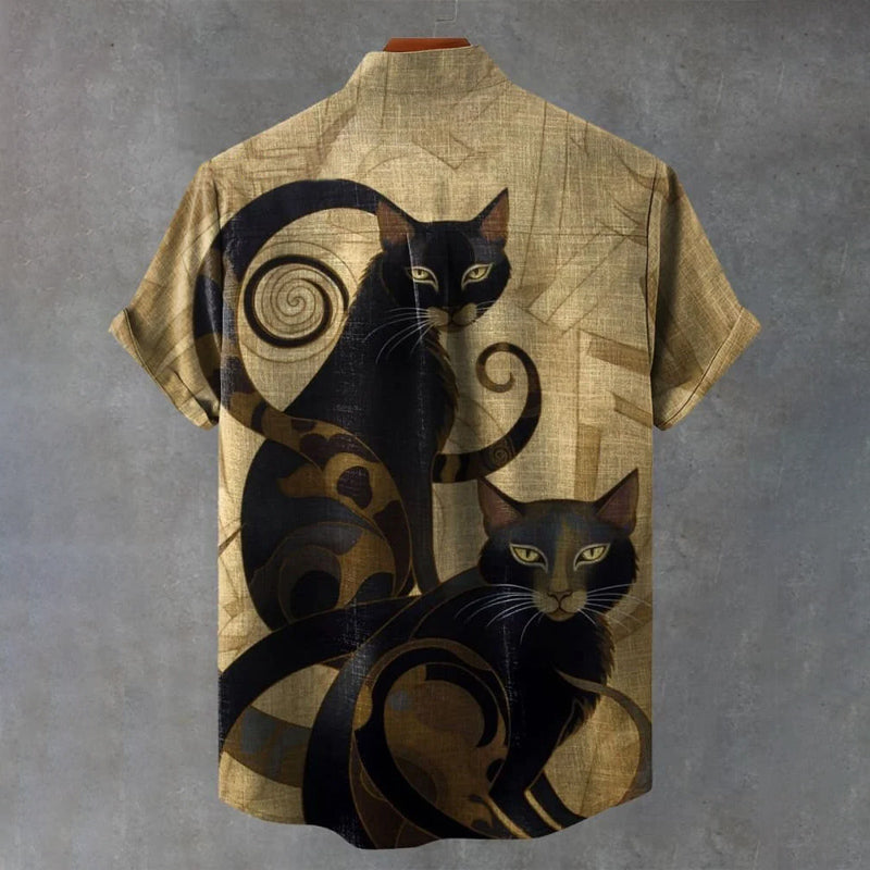 Vintage Black Cat Art Print Casual Shirt