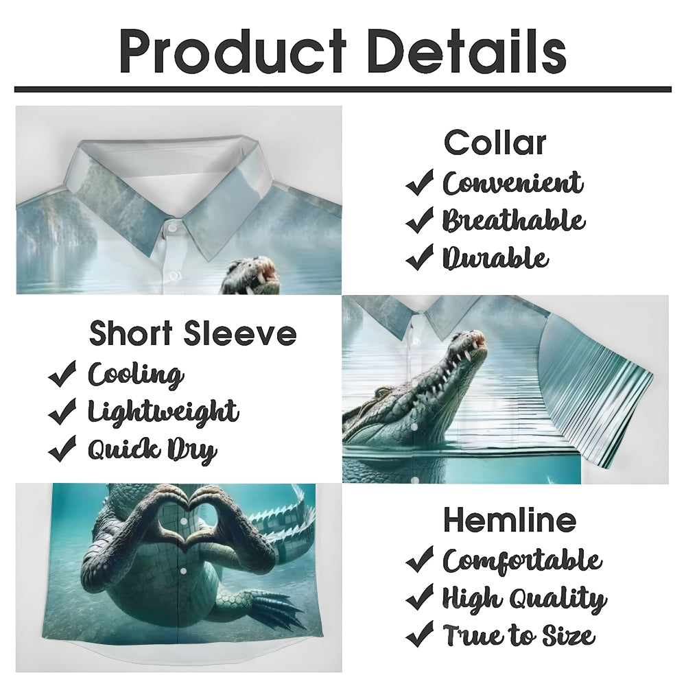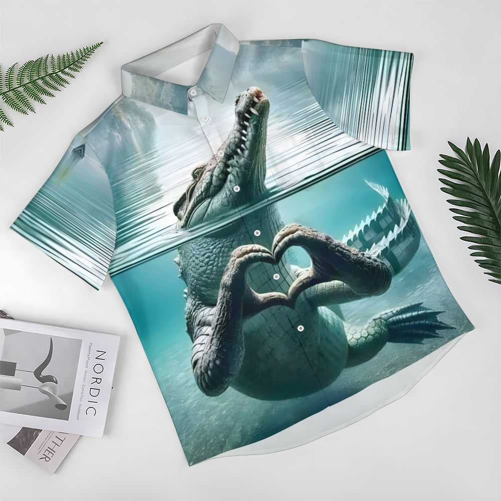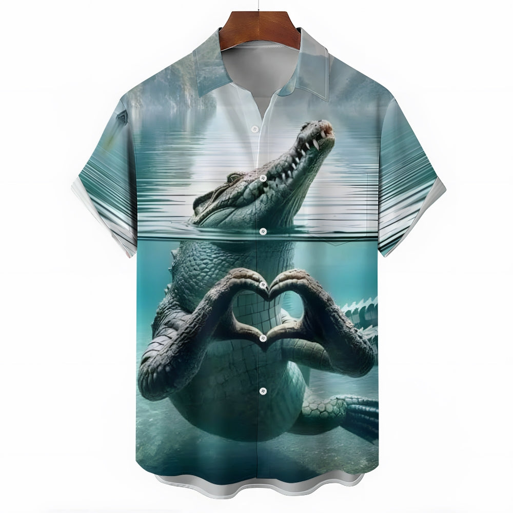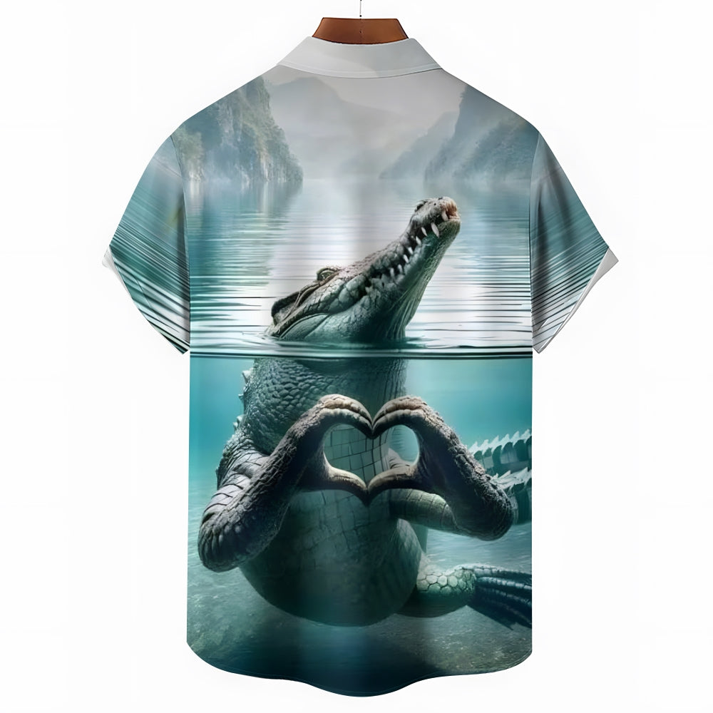 Vintage Crocodile Art Print Men's Chest Pocket Oversized Hawaiian Shirt 2501009664