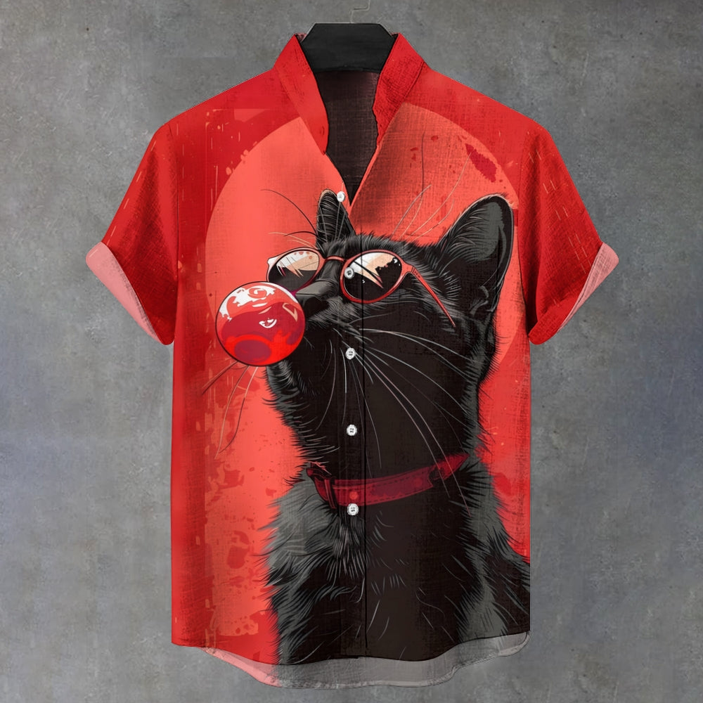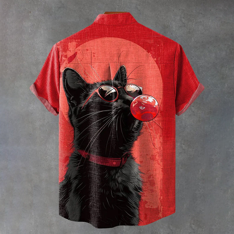 Vintage Fun Black Cat Art Print Casual Shirt 2412003109