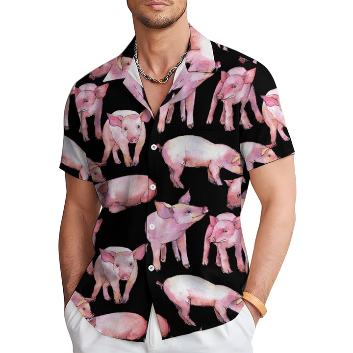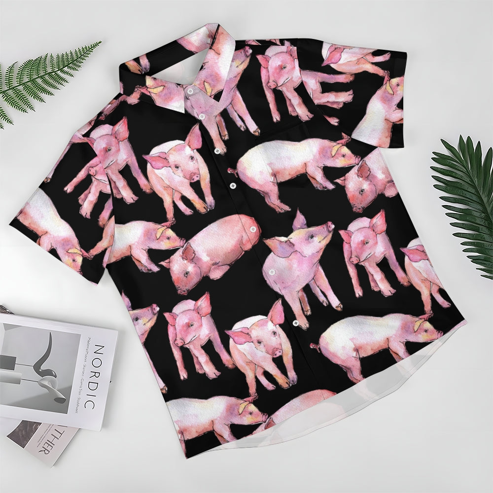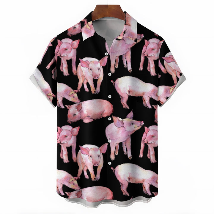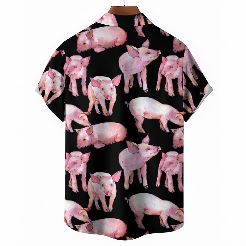 Watercolor Piglet Print Casual Oversized Short Sleeve Shirt 2407005423