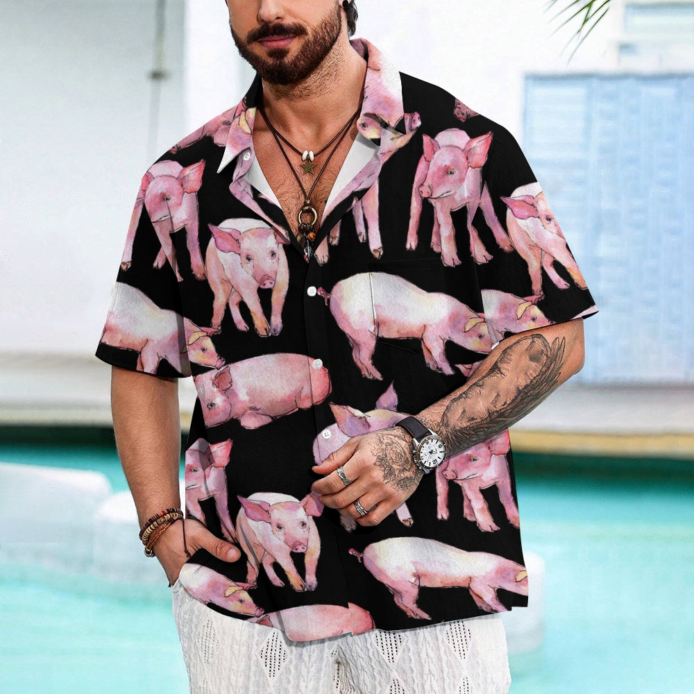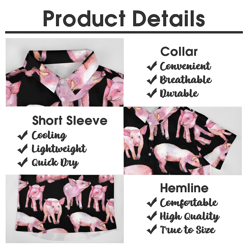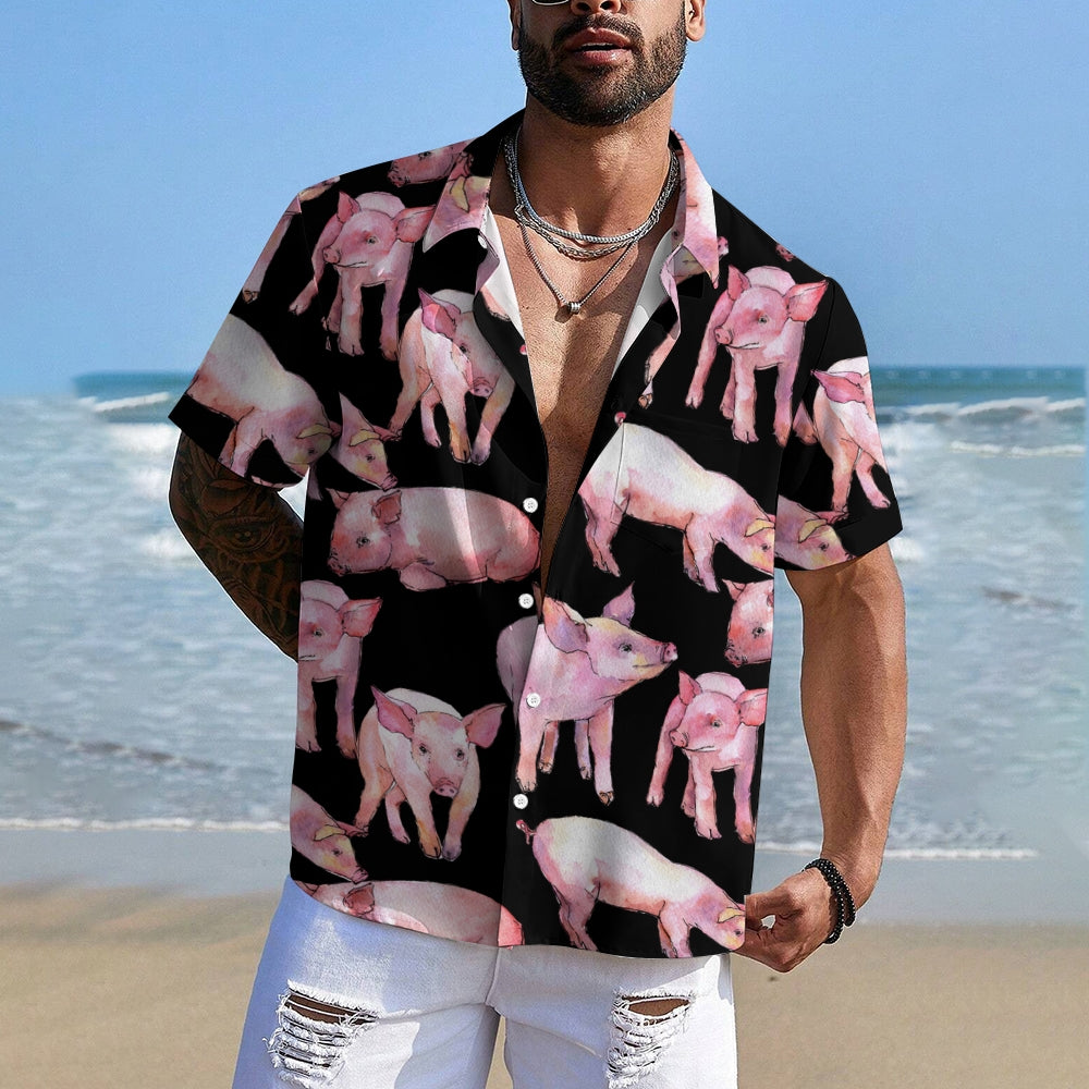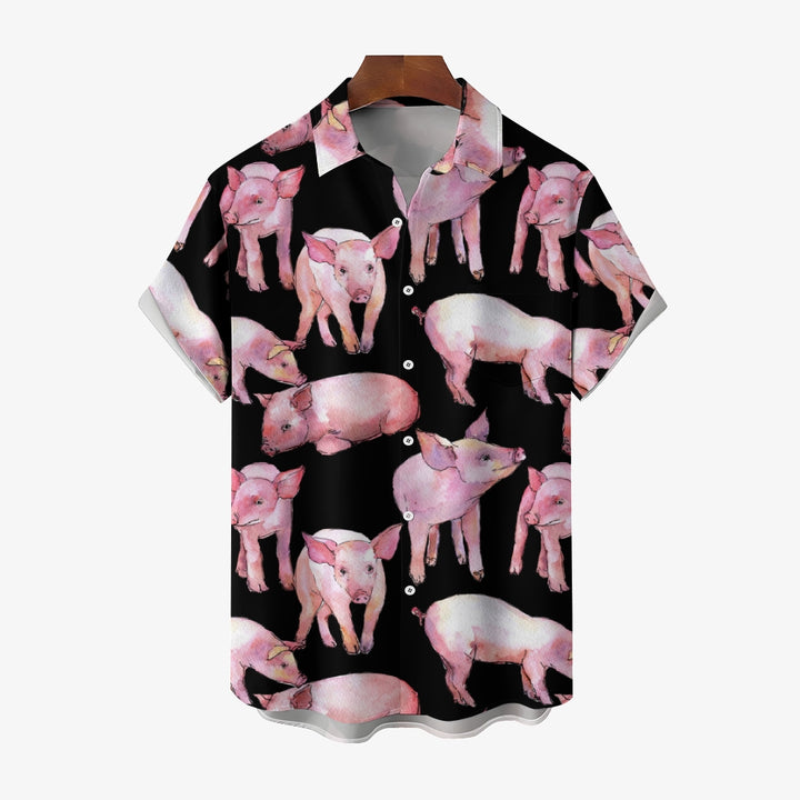 Watercolor Piglet Print Casual Oversized Short Sleeve Shirt 2407005423