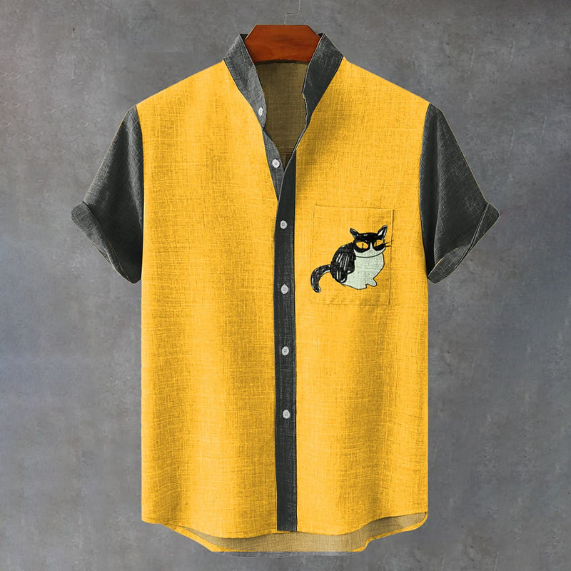 Yellow Dark Green Cute Cow Cat Art Print Casual Shirt
